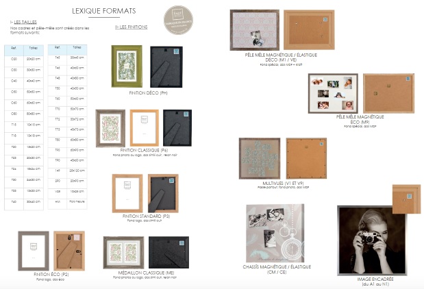 avec tous les modèles d'encadrement ainsi que les dimensions